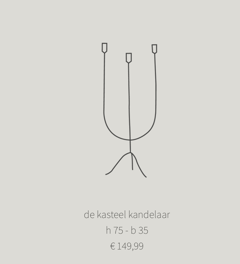 Deze Kasteel Kandelaar van k'Willem in huis is een verfijnd ambachtelijk product waar nooit twee precies hetzelfde kunnen zijn. k'Willem in huis combineert het restijzer met fijn rond ijzer. Vervolgens maken zij dat net-niet recht, maar juist wat ‘wonki” en een beetje krom. De lasnaden mogen gezien worden, want het is handwerk. Het ontwerp heeft altijd een mooi detail en een uitstraling die simpel en verfijnd oogt.
