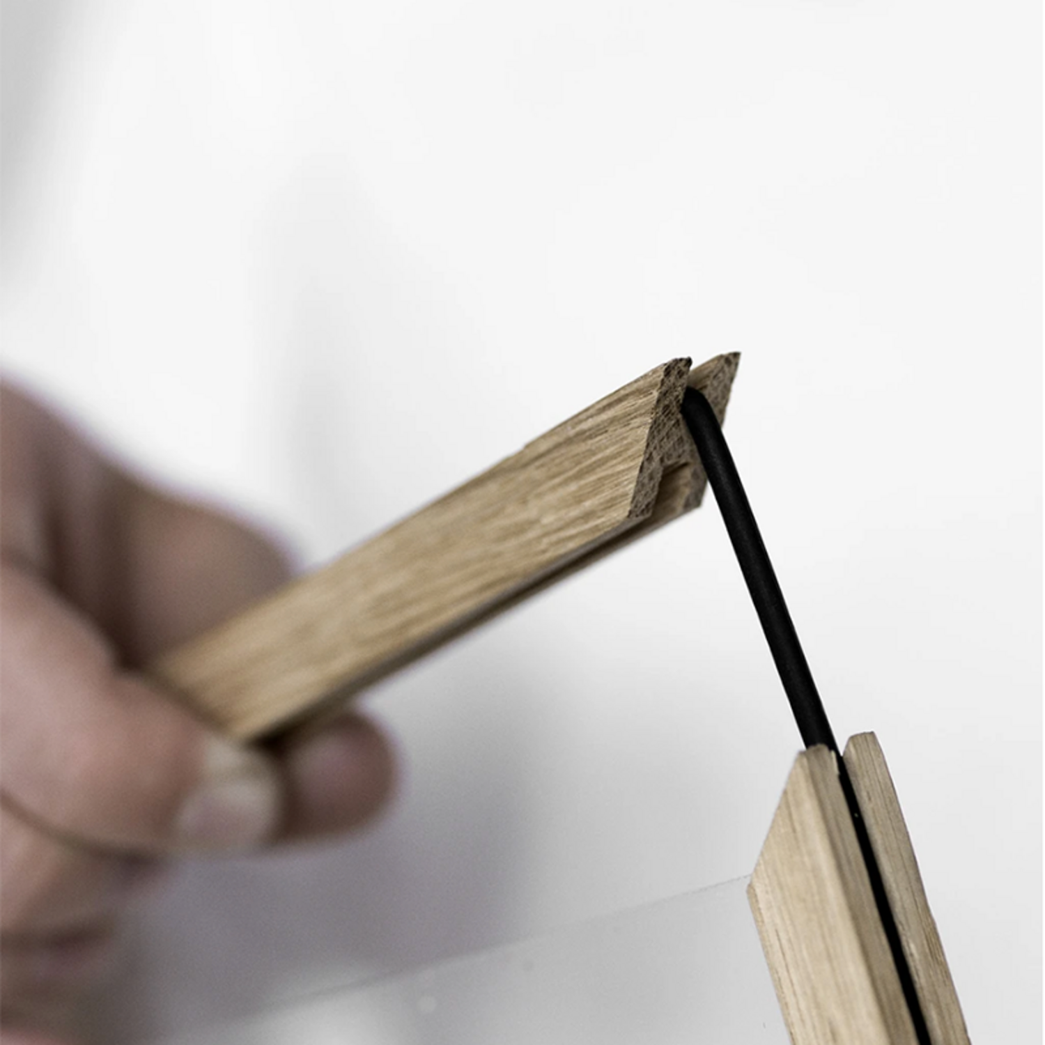 Stijlvolle transparante lijst van Moebe. De lijsten zijn niet alleen perfect voor posters maar ook mooi om gedroogde bloemen of bladeren in te doen. Het is een eenvoudige manier om karakter aan uw huis toe te voegen. Of u nu de voorkeur geeft aan een zachtere en subtielere uitstraling of meer contrast wilt toevoegen aan uw muren. De lijst bestaat uit twee platen van acrylglas, onbehandeld eikenhout en een elastiek dat de hele constructie bijeenhoudt en tegelijkertijd dienstdoet als hanger.