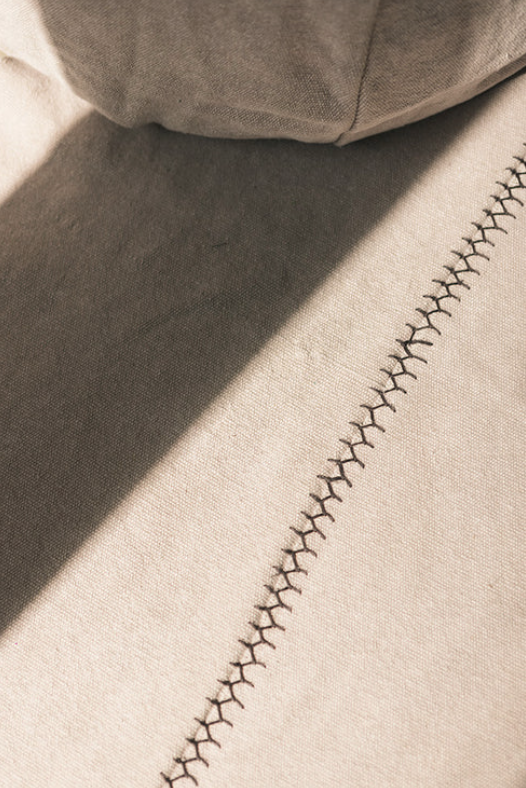 Geen twee vloerkleden zijn hetzelfde. Gemaakt van geüpcycled katoenen canvas in de kleur New Grey, wordt elk paneel met de hand gesneden en gestikt, waarbij natuurlijke onregelmatigheden, asymmetrische lijnen en subtiele kleurverschillen bewust worden omarmd – geen imperfecties, maar kenmerken van echt vakmanschap. Zeer licht van gewicht, eenvoudig op te vouwen en gemakkelijk te verplaatsen. De stonewash-afwerking is bij ieder kleed uniek; foto’s dienen daarom slechts als indicatie. Vlekken, markeringen en kleine imperfecties zijn normaal en maken elk ontwerp anders en uniek binnen onze collecties.