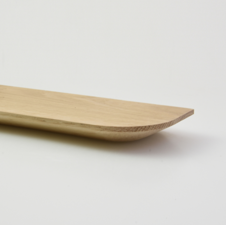 Deze wandplank is al een eyecatcher van zichzelf, door zijn gelaagdheid en subtiel smal toelopende vorm. Het materiaal oogt warm en levendig, en is tegelijk zo neutraal dat iedere collectie en kleurencombinatie die je er op zet mooi tot zijn recht komt. Het wandplankje bevestig je blind aan de muur zodat alle ogen gericht zijn op wat ertoe doet. De wandplank is er in drie verschillende maten.